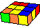 | | | Two elementary sequences, representing the most simple sequence for changes on 3. Level, are used here as commutators. Recognizing the mechanism, it is easy to remember the sequence. In the middle turn 'Fa' the two combinations are crossing, splitted they are more clear: | |  |  | | Zwei elementare Folgen, mithin represäntativ als die kürzeste Folge für Veränderungen auf der 3. Ebene, werden hier als Kommutatoren eingesetzt. Wenn man den "Mechanismus" durchschaut hat, ist es recht einfach, sich die Folge zu merken. Im Mittelzug 'Fa' überschneiden sich die beiden Folgen; aufgetrennt ist die Lage klarer: | | |