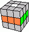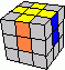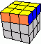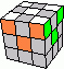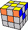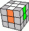 | | Um die Ecken und Kanten so zu tauschen, daß die Seitenfarben endgültig stimmen, wird erst eine der blau- en Eckenfolgen, dann eine der roten oder grünen Kantenfolgen eingesetzt. Jetzt ist der Würfel fertig. |