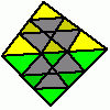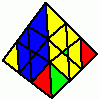 | | | The sequence above for the cycle of three corners is not a real useful turn, except for those cases, which have many edges in place.   | To bring the corners to their place, you've to watch the edge-centers, because there are no "real" centers. Those build, twisted or not, the platform to bring the first three corners to their place on one level. | Are they finally there, you don't have to care anymore about their orientation to the edge-centers, they fit automatically to them, as well as the orientation of the fourth corners is already right. | | | | Die obige Zugfolge für den Tausch von drei Ecken ist eine Krücke, die man anwenden kann, wenn schon sehr viele Kanten richtig stehen.   | Um die Ecken an ihren Platz zu bringen, orientiert man sich an den Kanten-Mitten, da es keine "realen" Mitten gibt. Diese bilden, gedreht oder nicht, die Plattform, um die ersten drei Ecken auf eine Ebene zu brintgen. | Sind sie erst einmal dort angekommen, muß man sich nicht mehr um ihr Verhältnis zu den Kanten-Mitten kümmern, dies stimmt automatisch, wie auch die Orientierung der vierten Ecke dann schon stimmt. | | |