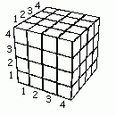 | | | Notation for Rubik's Revenge Symbols For Rubik's Revenge I've developed a line oriented notation, that is applyable for all types of Rubik's Cube. Only three symbols are necessary in 4 forms: | |  | |  | |   | |   | | turning one slice | | | | | | | | | | | |  |  |  |  |  |  |  |  |  | vertical | | | | | | | | | | | | | |  | |  | |  | |  | | horizontal | | | | | | | | | | | | | |  | |  | |  | |  | | transversal | The four lines symbolize the four levels of the 4-cube: Rubik's Revenge might be handled as Rubik's Cube (3x3x3) as well as the 2x2x2 cube. To emulate the classic cube the two middle slices have to be turned as one, and when turning an outer slice the turn of only one middle slice should be avoided, but not the turn with both the two center slices. The usage as 2x2x2 cube is executed by turning an outer slice with the neighboured center slice, single slice turns never appear. To show the 3cube appearance the first line in the line system is labeled gray. Same happens to the first two lines to describe the 2cube. Here a sequence is displayed which uses both variations of the Rubik's Revenge: | | | | Notation für den Rubik's Revenge Symbole Für den Rubik's Revenge habe ich eine linienorientierte Notation entwickelt, die für alle Würfel verwendet werden kann. Es werden hierbei 3 Symbole in je 4 Ausprägungen verwendet: | |  | |  | |   | |   | | Drehungen einer Scheibe | | | | | | | | | | | |  |  |  |  |  |  |  |  |  | vertikale | | | | | | | | | | | | | |  | |  | |  | |  | | horizontale | | | | | | | | | | | | | |  | |  | |  | |  | | transversale | Die vier Linien stehen für die vier Schichten des Vierer-Würfels: Rubik's Revenge kann sowohl wie ein Rubik's Cube (3x3x3) als auch wie ein kleiner Würfel (2x2x2) gehandhabt werden. Um den klassischen Dreier zu emulieren, verwendet man die beiden Mittelschichten wie eine und unterläßt hier die Drehung einer einzelnen Mittelschicht. Die äußeren Schichten werden nicht mit einzelnen Mittelschichten kombiniert. Zur Verwendung als 2x2x2 Würfel wird eine Außenschicht mit ihrer benachbarten Mittelschicht verbunden gedreht, Einzelschichtdrehungen kommen gar nicht vor. Um Drehungen des Dreierwürfels innerhalb der Liniennotation darzustellen, wird in meiner Darstellung die oberste Zeile in Grau ausgeblendet. Selbiges geschieht beim 2er mit den obersten beiden Zeilen. Hier die Darstellung einer Zugfolge, in der beide Verwendungen stattfinden, zunächst 3er, dann 2er: | | |