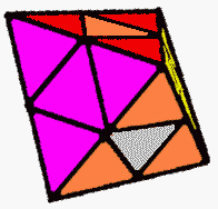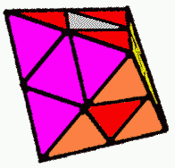 | | | Three ways remain to solute the octahedron determined by the centerstones: It is ready, or one of two possible cycles of center stones: one clockwise, one anticlockwise: | | | | Drei Möglichkeiten verbleiben, die durch die Kanten bestimmt werden: Der Würfel ist jetzt gerichtet, oder es bleibt ein Dreiertausch der drei Mittelsteine im Uhrzeigersinn, oder einer diesem entgegengesetzt. Dabei ist der erste Zug der Lösungsfolge in genau die Richtung des Tausches ausgerichtet: | | |